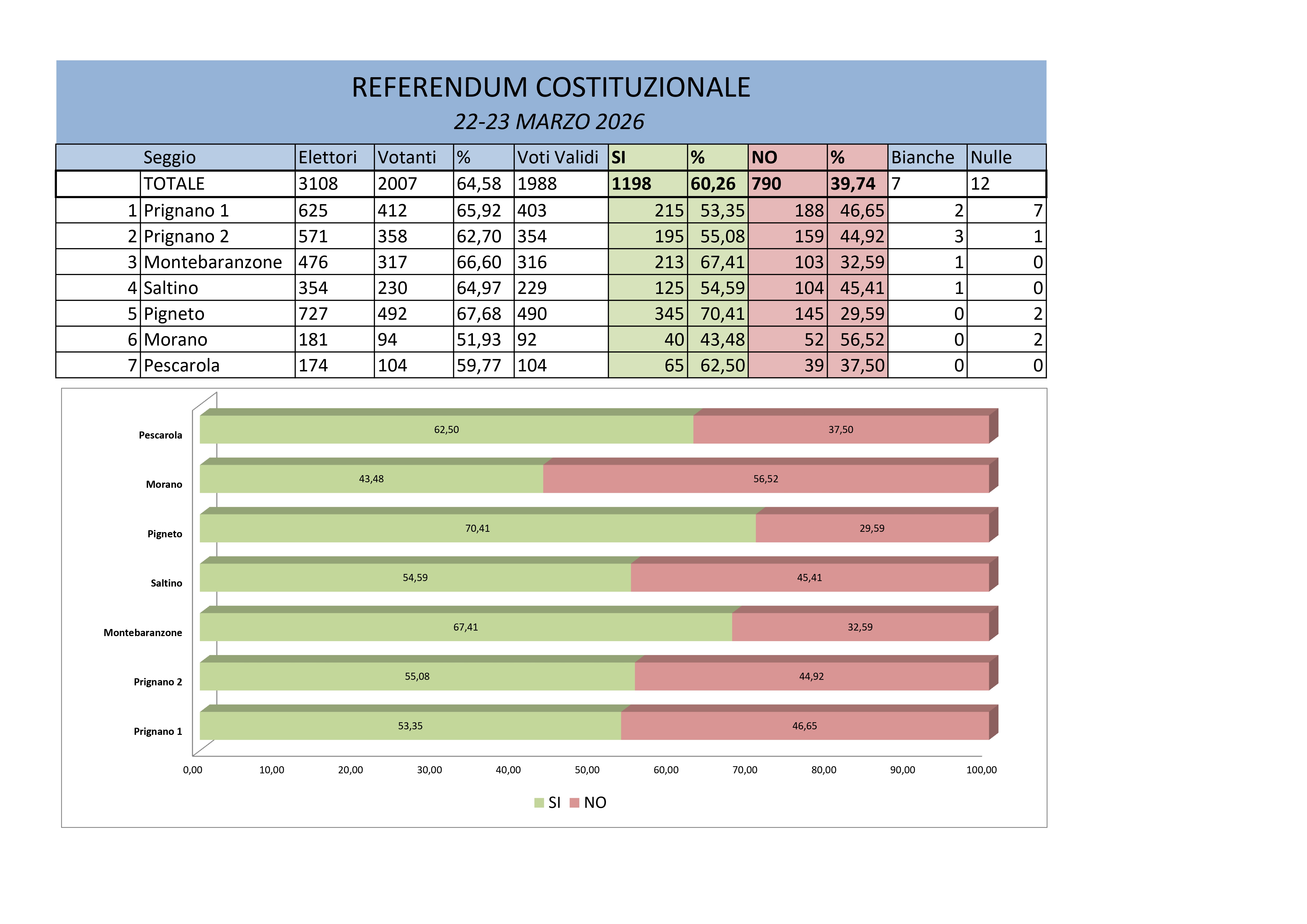 Nelle giornate di domenica 22 e lunedì 23 marzo 2026 si è svolto il referendum costituzionale su tutto il territorio nazionale.