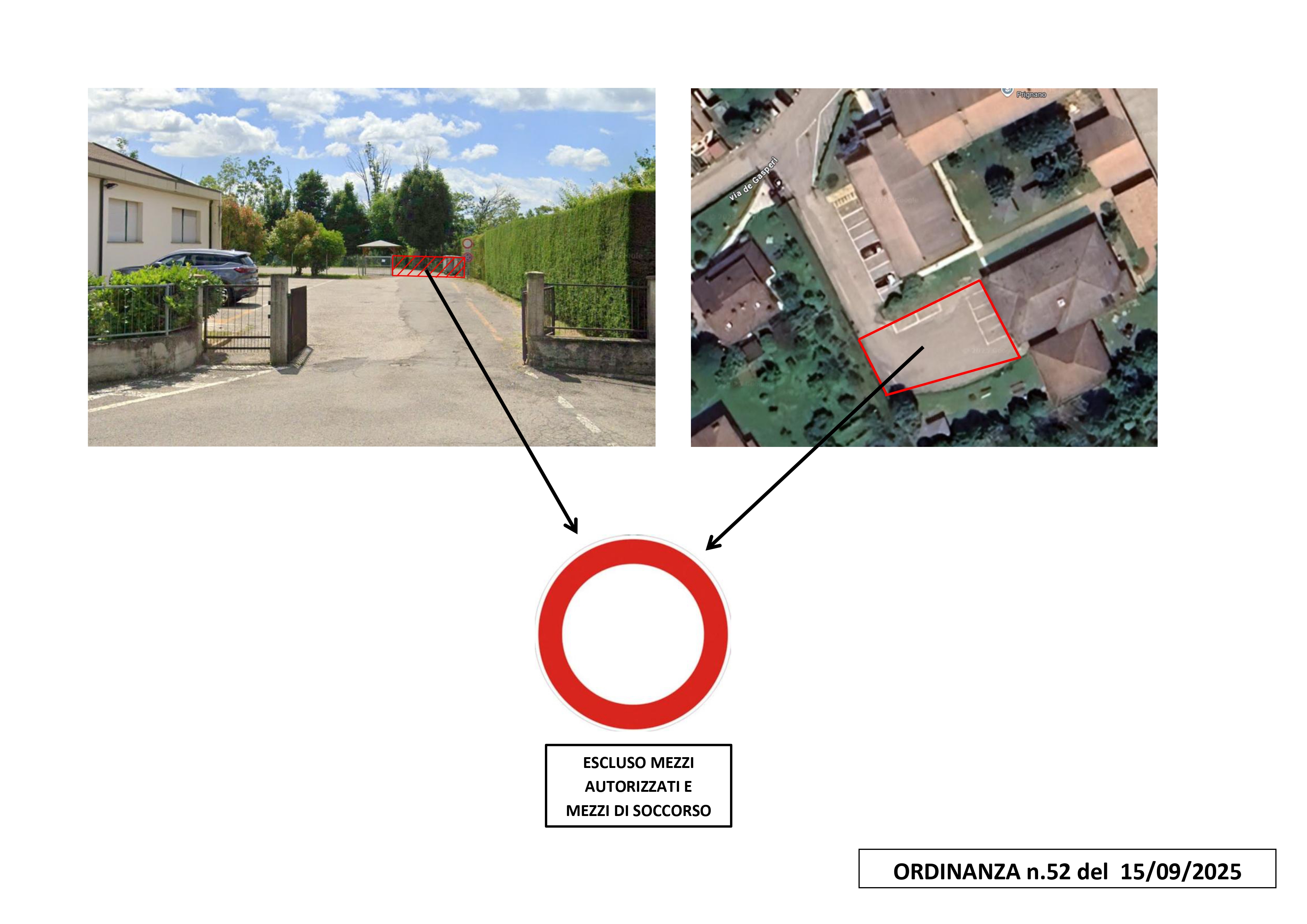 - Divieto di transito nell’area antistante la scuola dell’infanzia di Via Alcide De Gasperi, eccetto mezzi autorizzati dalla Polizia Locale e di soccorso.