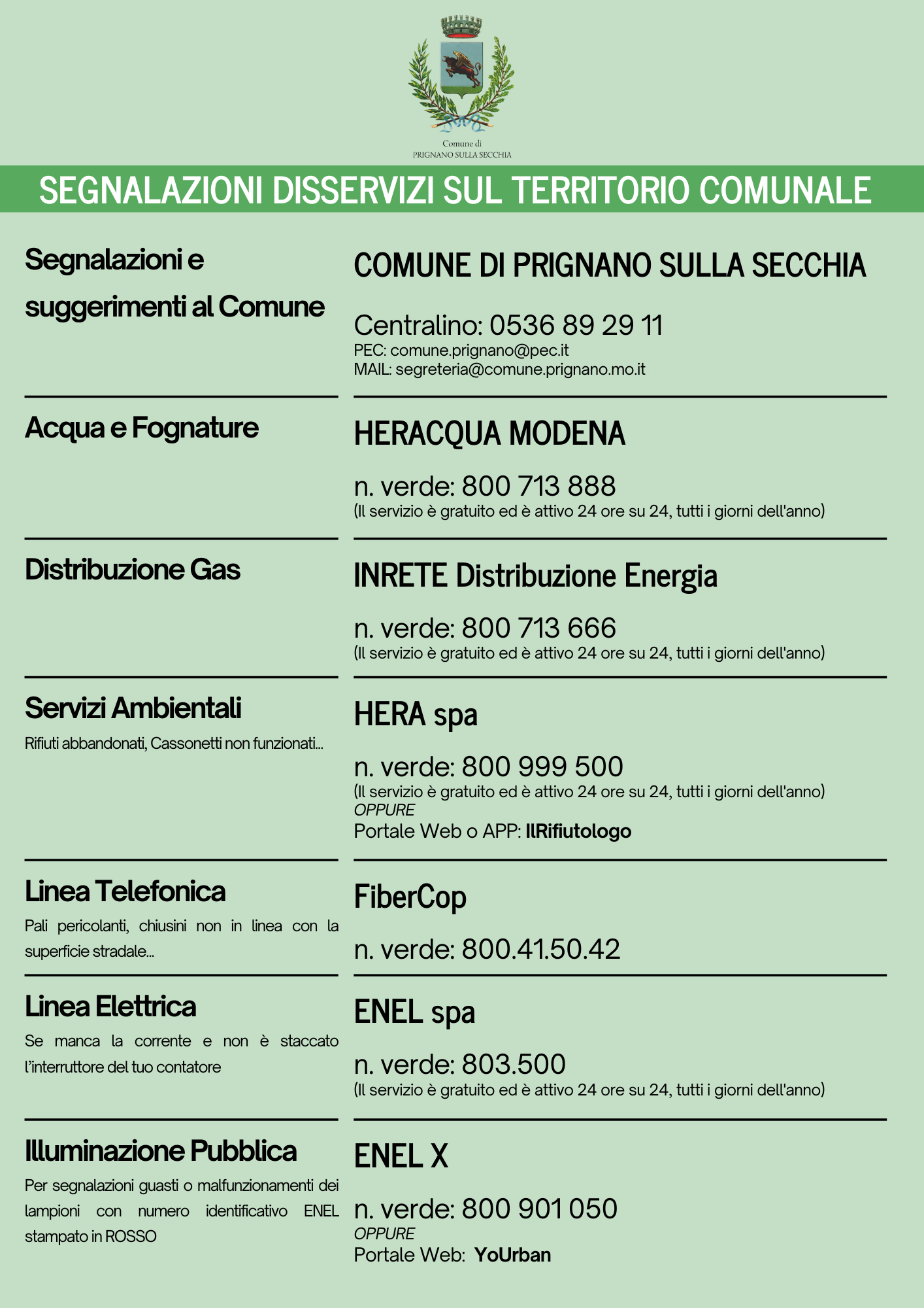 ACQUA e FOGNATURE: HERACQUA MODENA: Tel 800 713 888 (Il servizio è gratuito ed è attivo 24 ore su 24, tutti i giorni dell'anno)
